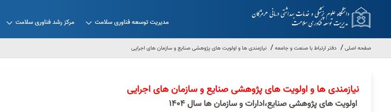 لینک نیازمندی ها و اولویت های پژوهشی صنایع و سازمان های اجرایی