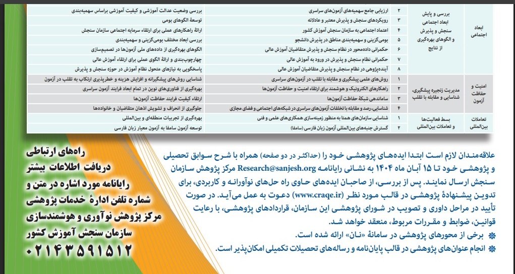 فراخوان اولویتهای پژوهشی و فناوری سازمان سنجش آموزش کشور