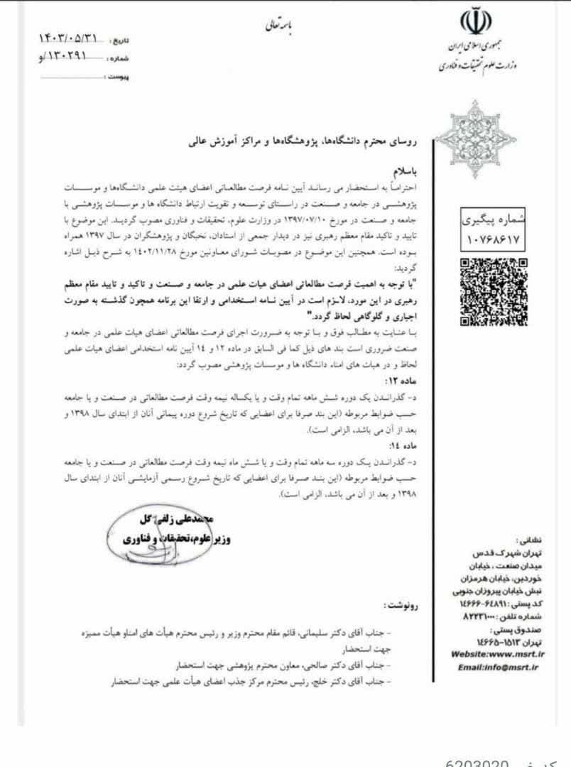 فرصت های مطالعاتی جدید اعضای هیات علمی در جامعه و صنعت